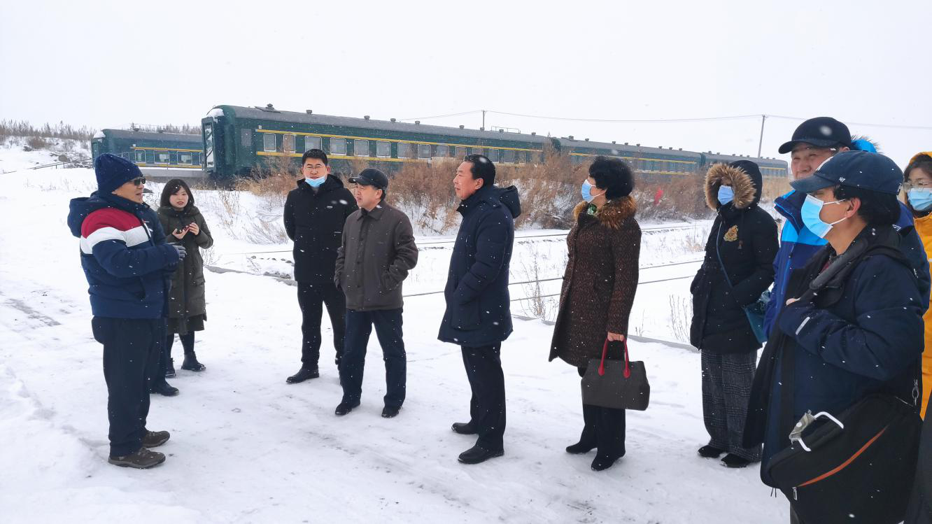 注:黑龍江工商學(xué)院鐵道學(xué)院實踐中心主任張新華介紹實訓(xùn)場地