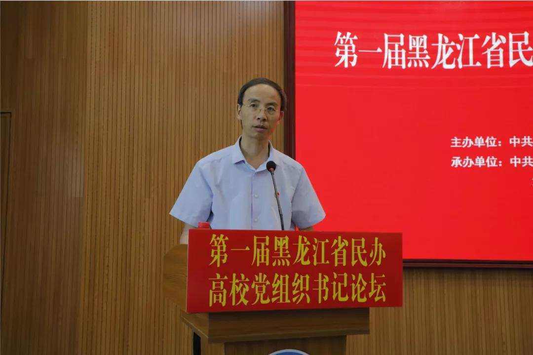 圖說:為深化黨建“示范創建”,推動民辦高校黨建提質增效,6月23日,省委教育工委舉辦第一屆黑龍江省民辦高校黨組織書記論壇。我校黨委書記徐德榮在會上作題為《以“14445”模式為載體 推進黨建“示范創建”》的交流發言。