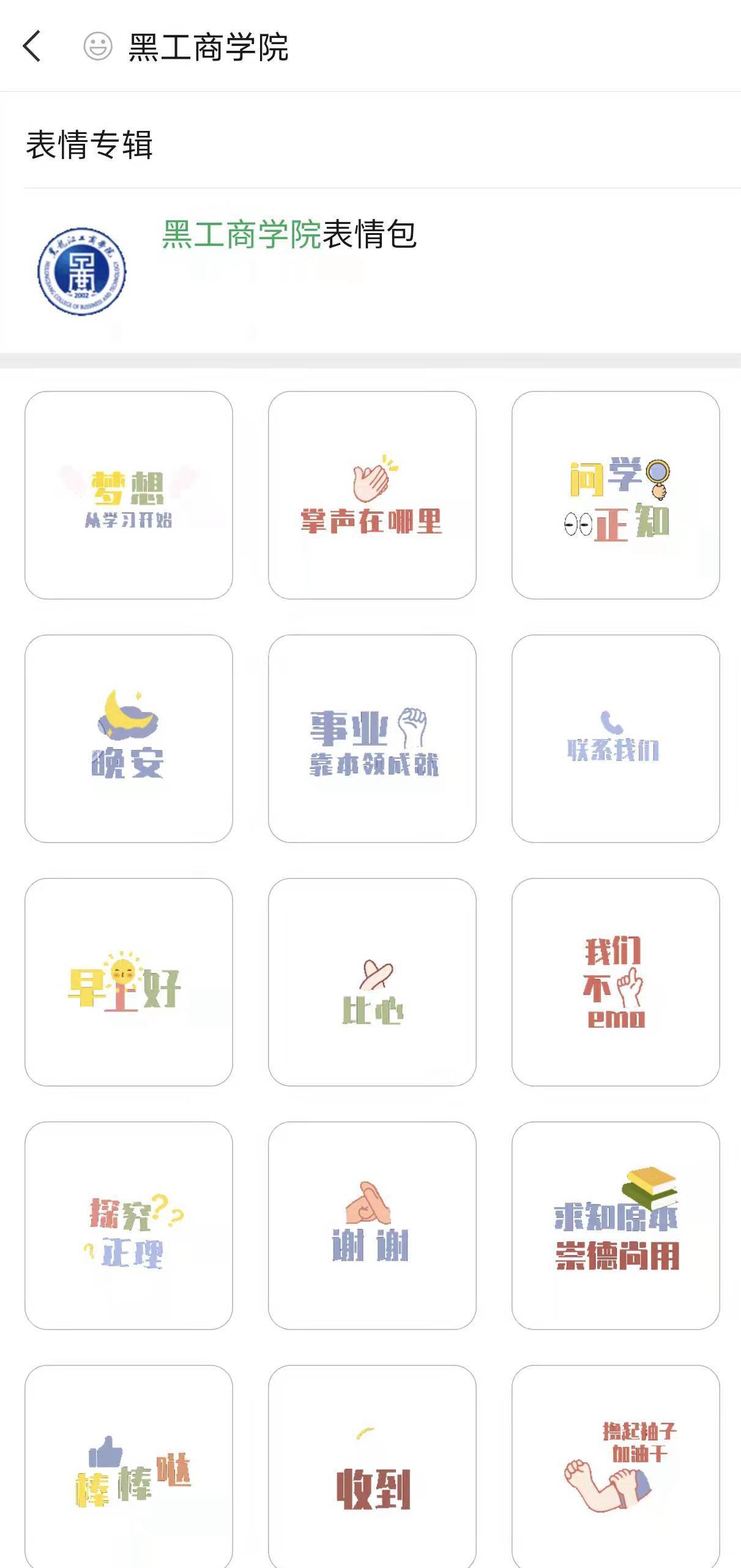 注:在微信端“表情”搜索中,輸入“黑工商學(xué)院”即可使用該“表情專(zhuān)輯”