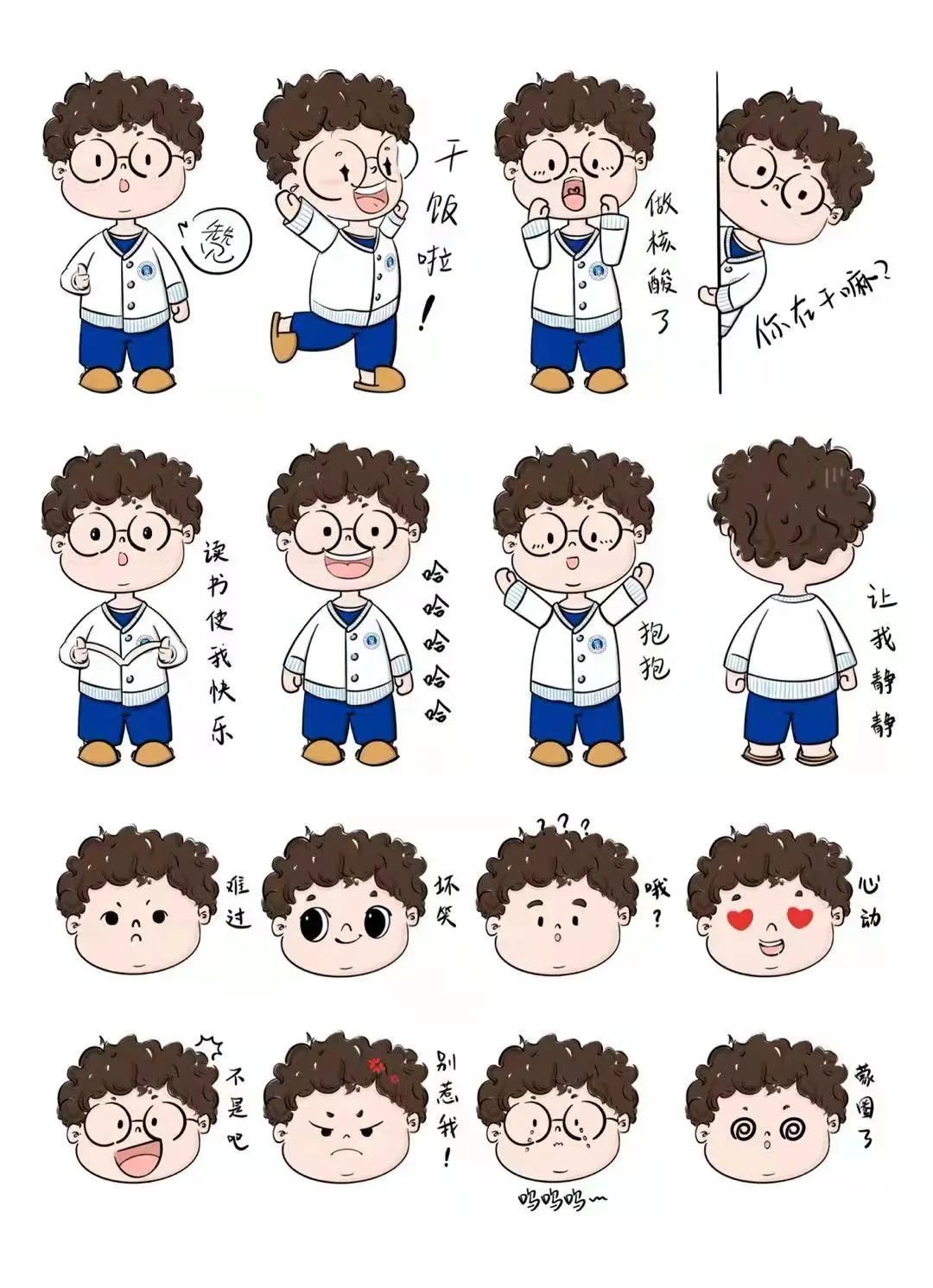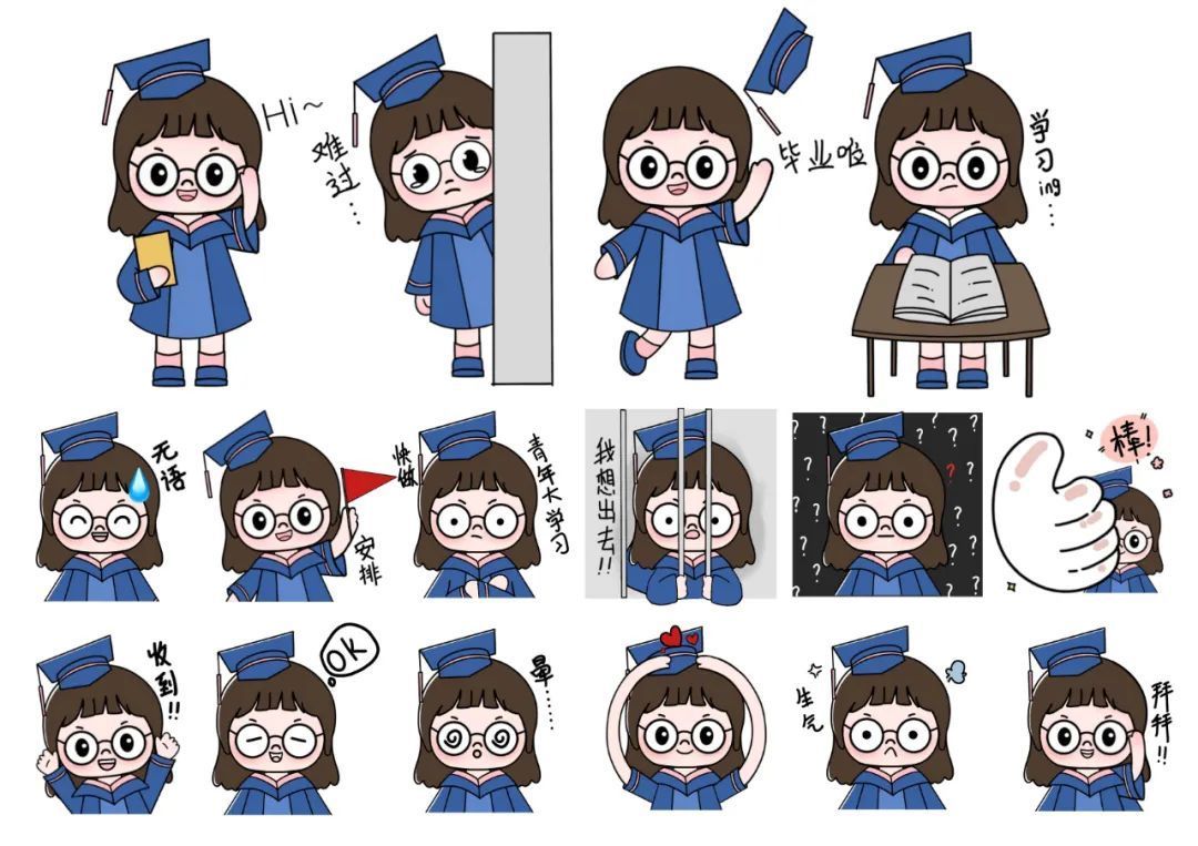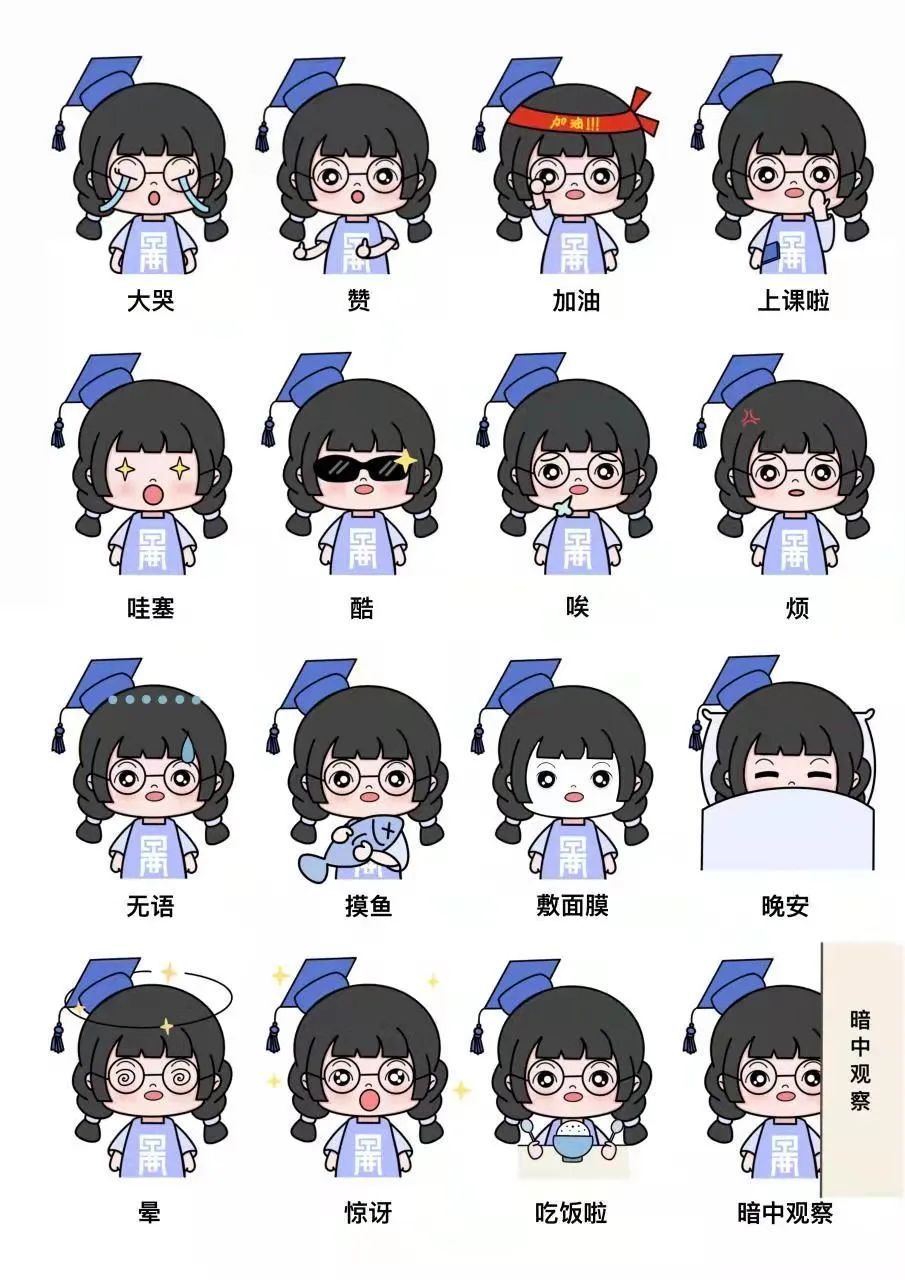 命題、解讀、構(gòu)思、手繪、動(dòng)畫(huà)呈現(xiàn)……在半個(gè)月的時(shí)間里,同學(xué)們反復(fù)設(shè)計(jì)修改,以“求知原本 崇德尚用”校訓(xùn)精神為魂,“?;蘸蜆?biāo)準(zhǔn)字體”為專(zhuān)屬標(biāo)識(shí),結(jié)合師生常用的網(wǎng)絡(luò)語(yǔ)言表達(dá)形式,初步形成了一系列包括回復(fù)語(yǔ)言、網(wǎng)絡(luò)用語(yǔ)、情緒表達(dá)、疫情防控提示、學(xué)校文化元素、形象人物IP等為主要內(nèi)容的“表情包”。